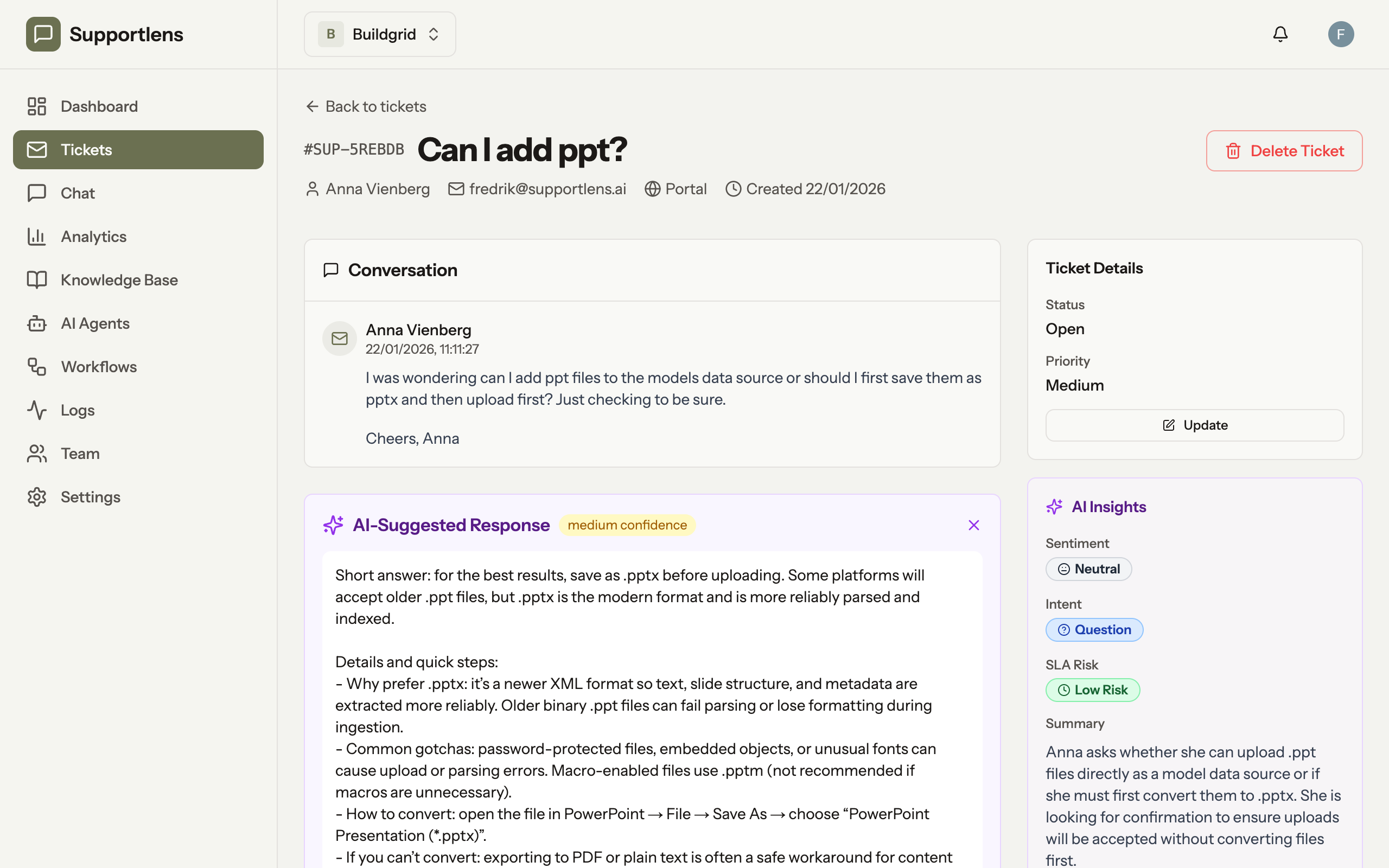 - AI-generated response suggestions